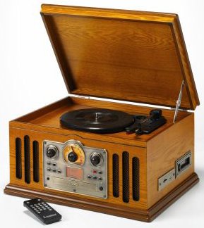 Cheap "6 in 1 Retro Nostalgia Music Centre with MP3 record function (to USB 2.0 or a SD Memory card) with built in turntable, CD Player, Radio & Cassette Deck - Nostalgic Real Wood Veneer Cabinet Music System" Discount Review Shop