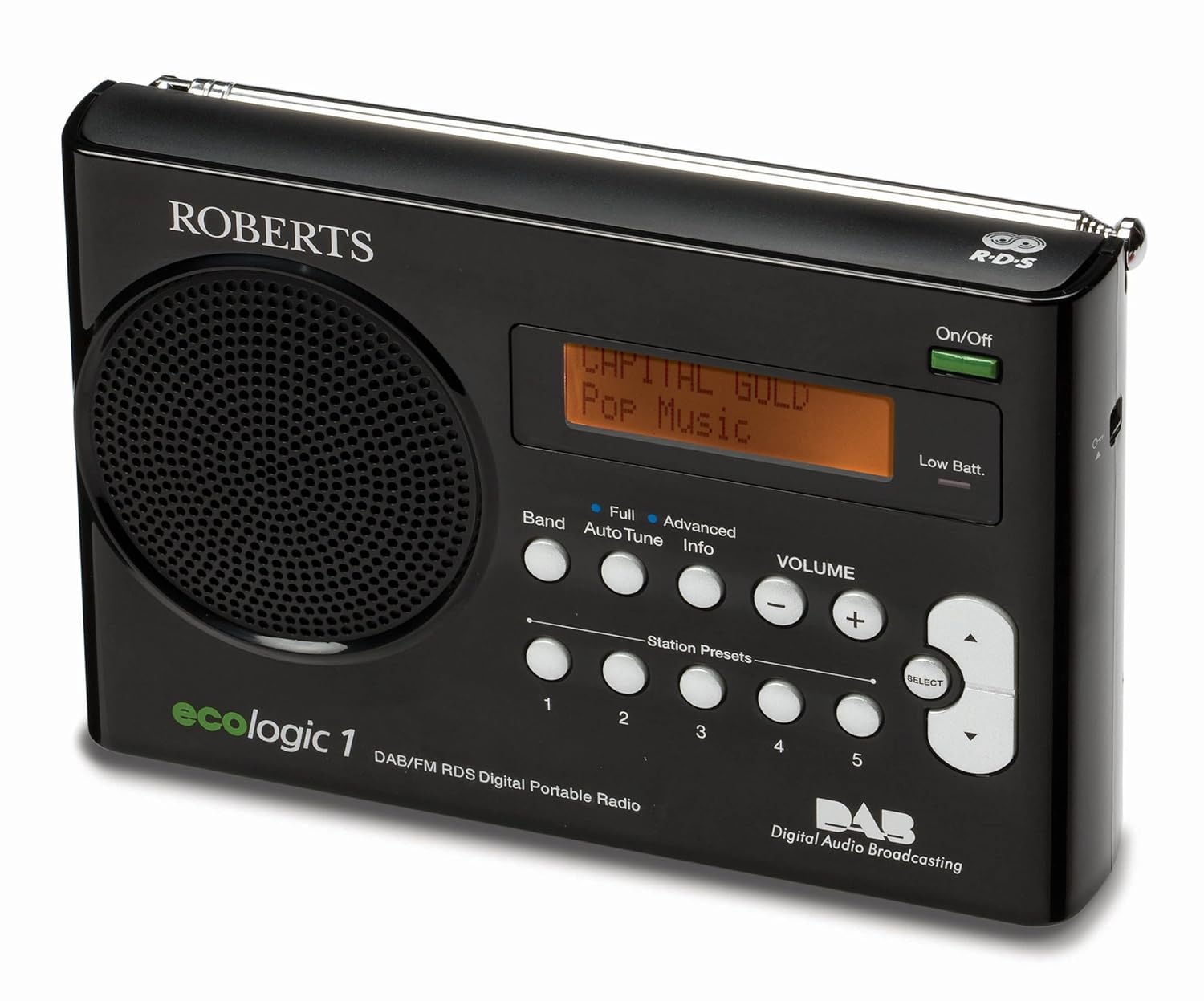 Roberts ECO1BK Ecologic 1 DAB/FM RDS Digital Radio with Built-in Battery Charger - Black